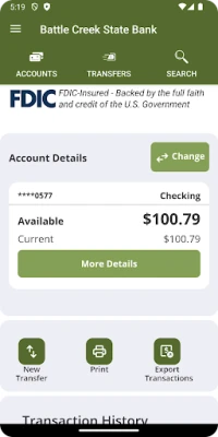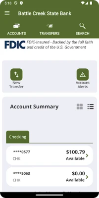 The Battle Creek State Bank App allows you to easily and securely access your accounts on the go! With your FREE Battle Creek State Bank App you can check your balances, transfer funds and pay bills. Access is available free of charge to our online banking users; Battle Creek State Bank's online banking is required. Your mobile carrier’s text messaging and web access charges may apply.
