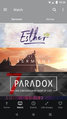 Checkout all kinds of content which you can download and share with your friends and family via Twitter, Facebook or email. Enjoy quick access to our Sunday messages or browse Life Group options to get plugged in.