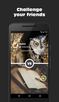 Challenge your opponents in a quick duel game. Answer an amount of questions that will be equal for both players where the winner will be the one that guesses more right. Also available themed challenges.