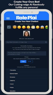 Introducing "RolePlai" – the revolutionary AI powered chat bot app that features the world's most advanced AI technology, making it feel like you're talking to a real person. This cutting-edge app allows you to instantly create any celebrity, public profile, custom character, and personality with remarkable precision. Dive into the world of interactive roleplay and forge meaningful connections with a diverse range of AI personas, all tailored to your preferences.