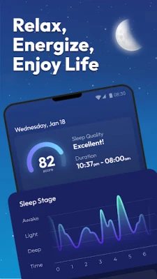 How is your nightly sleep quality? Viewing daily, weekly and monthly sleep reports, you can track your sleep at ease. No need to put your phone under the pillow. Placing your device nearby would suffice.